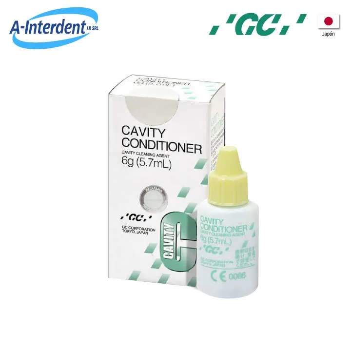 Cavity Conditioner es una solución de ácido poliacrílico al 20 % diseñada para hacer un leve barrido dentinario y para acondicionar la dentina y el esmalte antes de la aplicación del material de restauración de ionómero de vidrio. Aumentará la adhesión entre el cemento de ionómero de vidrio y la estructura dental para obtener una mayor durabilidad.